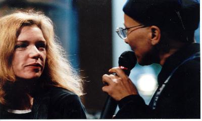 The talented & seasoned Canadian Blues Star inspired Mj to create website(s) that would support, inform and guide 'new' & 'aspiring' Musical Entrepreneurs; © The M.E.S.S. - The Musical Entreprenuers Studio Session © The Damn Musicians' FUN d - OnLine Partner to OpenStage Projects © VisualPerceptions - Website Design/Consulting Company commented during a brief conversation on music careers that; "Musicians have to look at this as a business." "There is just 'so' much to take care of." On top of managing her own career development Mj Dann embarked on a journey that has not only developed her own talents and aspirations but has afforded her the knowledge needed to create a 'presence' in the music & entertainment industries and encourage others to do the same through self management, production and promotion. The WebSite Design company, © VisualPerceptions was created to assist Musical Entreprenuers present themselves to both their local communities, potential gigs and to potentially the WHOLE World via the internet. Above Photo: Sue Foley at an OpenStage November 16, 2ooo